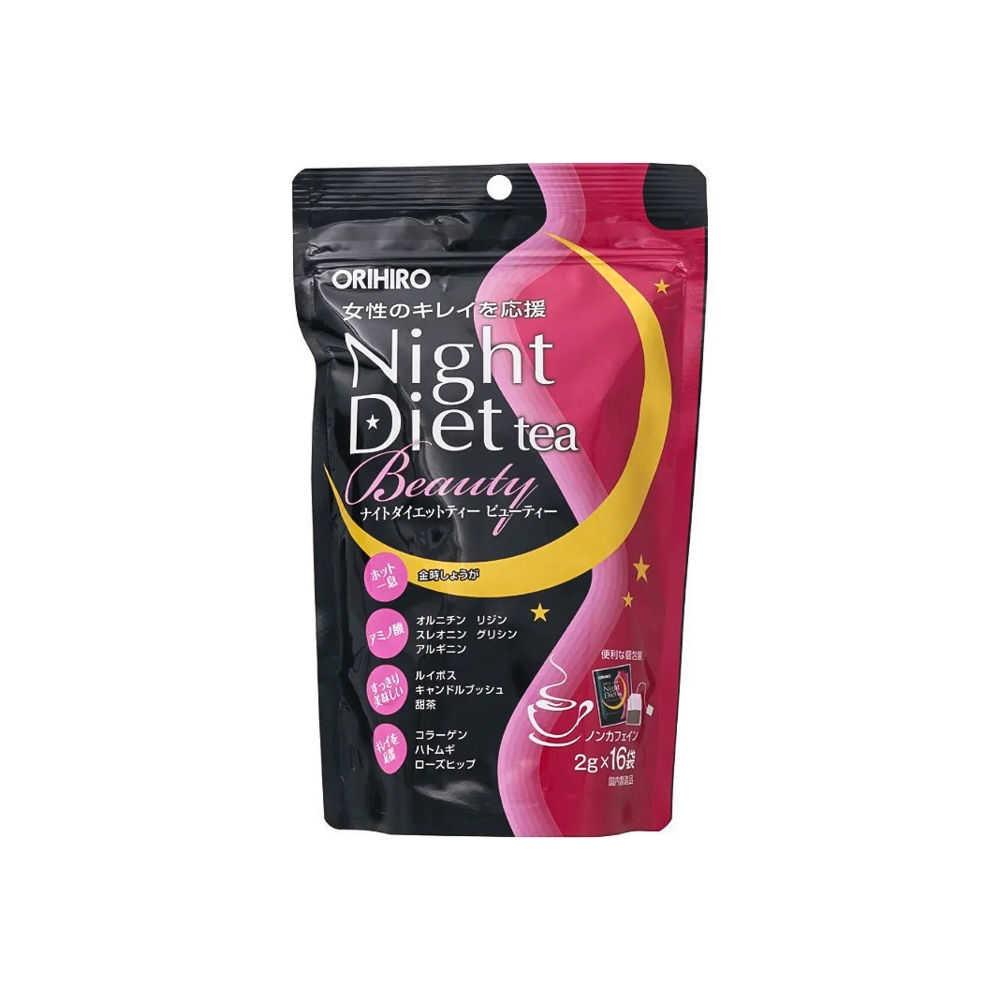 Trà giảm cân làm đẹp da ban đêm Orihiro Night Diet Tea Beauty giúp giảm mỡ bụng, hạn chế tích tụ chất béo, ngoài ra còn bổ sung collagen tăng độ đàn hồi cho da, giảm nếp nhăn,... Trà chiết xuất từ thành phần tự nhiên, an toàn với sức khỏe, vừa giúp hỗ trợ giảm cân, vừa bổ sung dưỡng chất làm đẹp da, săn dáng.